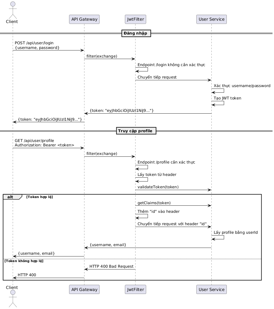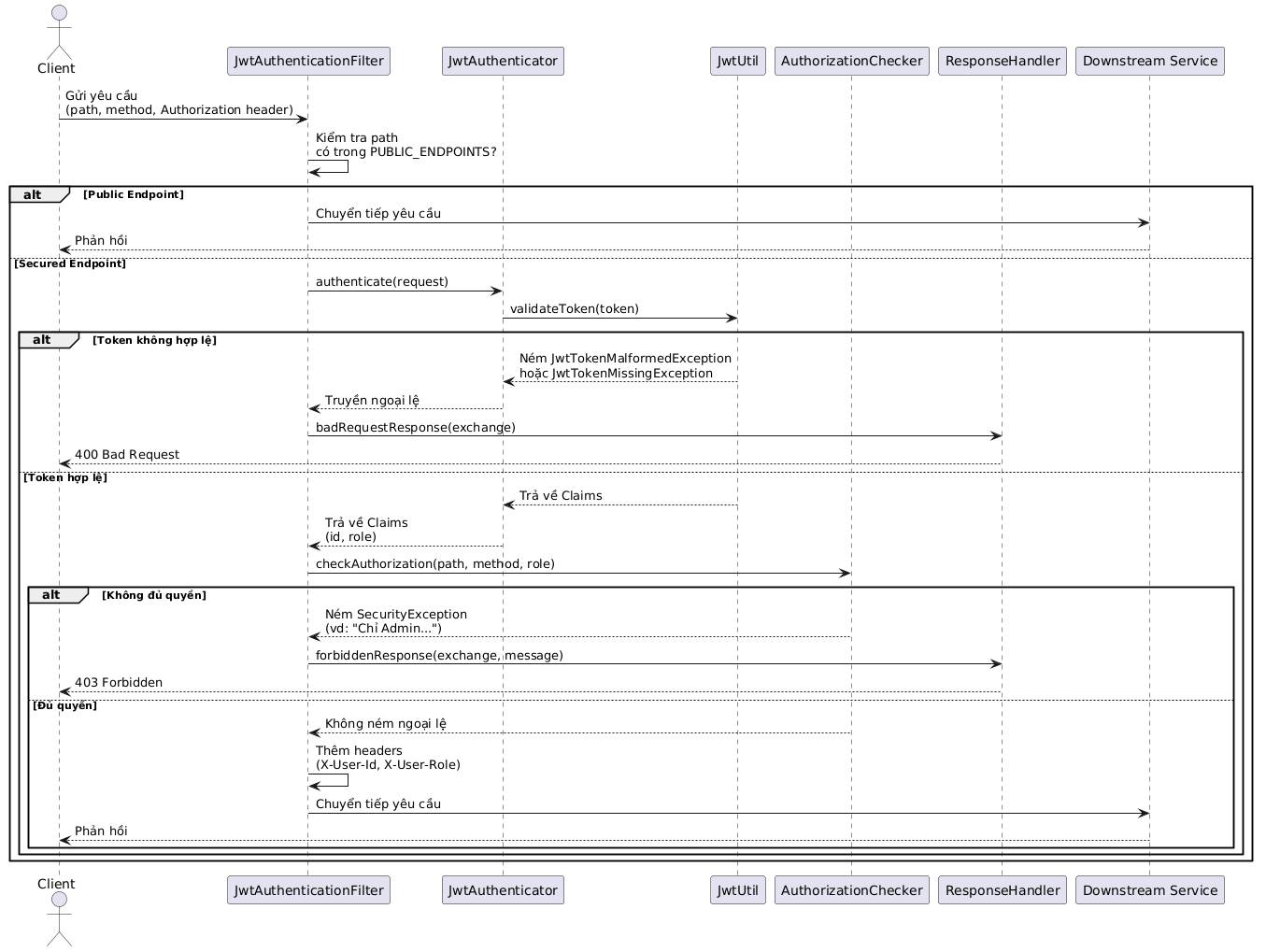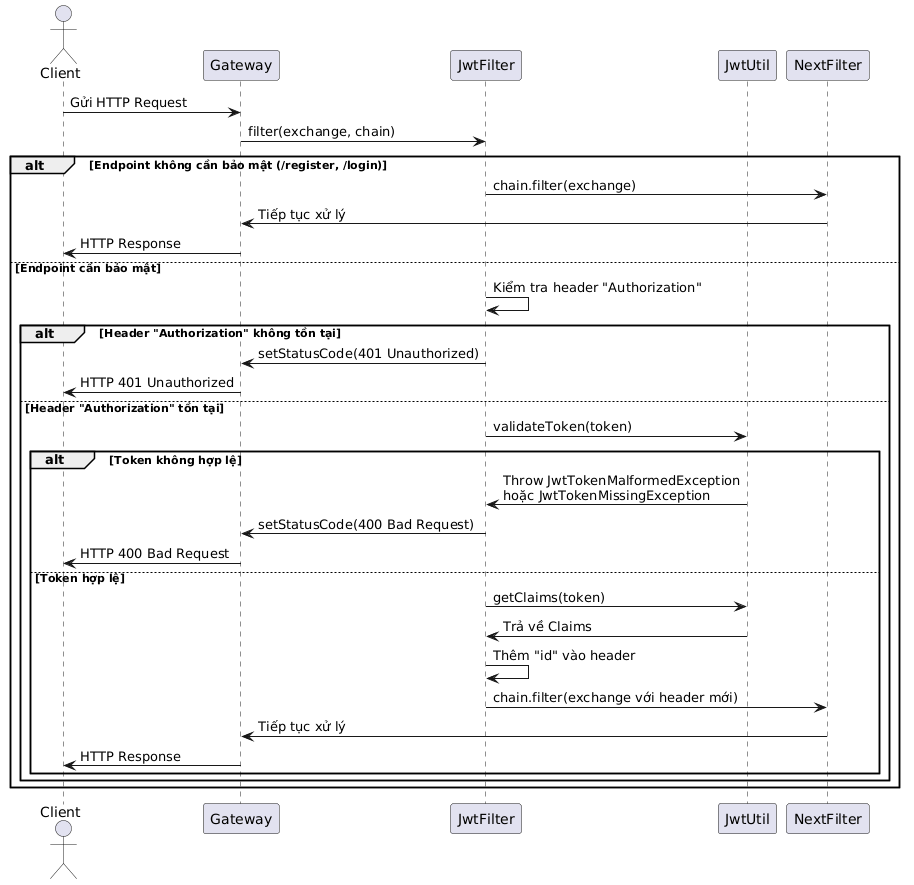 JwtFiltertrả về mã trạng thái 401 Unauthorized thông quaGateway. - Nếu header tồn tại,