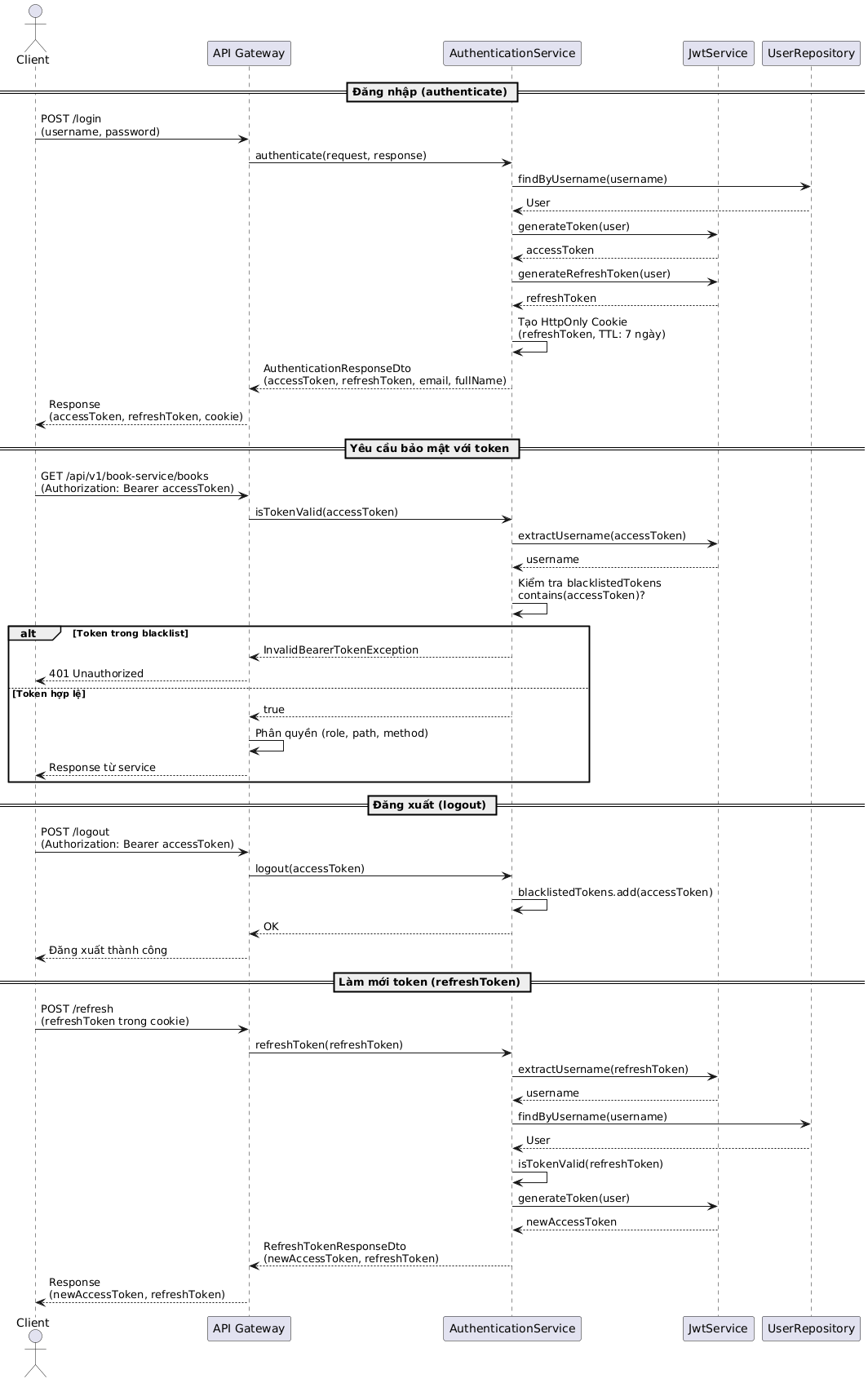 1. Client gửi request: Client gửi một HTTP request tới Gateway (Spring Cloud Gateway).